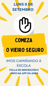 Comprácenos anunciarvos o comezo no noso centro do VIEIRO SEGURO, organizado pola Concellería de Educación do Concello de Lugo en colaboración coa nosa ANPA.